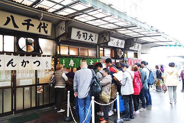 綠色框框:我們吃生魚片早餐的地方,有名的店非常明顯,外面會大排長龍。
