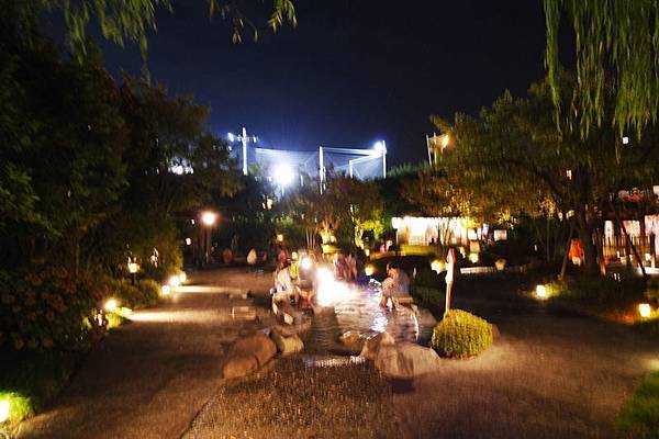 足湯是很長的一條彎曲水道,水裡的溫度有些地方是冷的、有些是熱的,走一圈就像在洗三溫暖(笑)