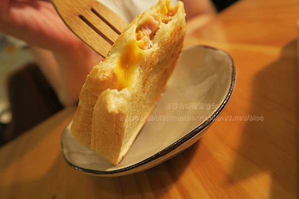 所以我點了招牌烤乳酪三明治的迷迭香雞口味~(光聽名子就覺得一定很好吃~~)