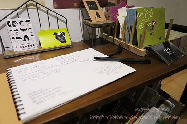 ↑繪本櫃上擺著的,給顧客留言用的本子,看著各種留言與塗鴉,會讓人會心一笑呢:)