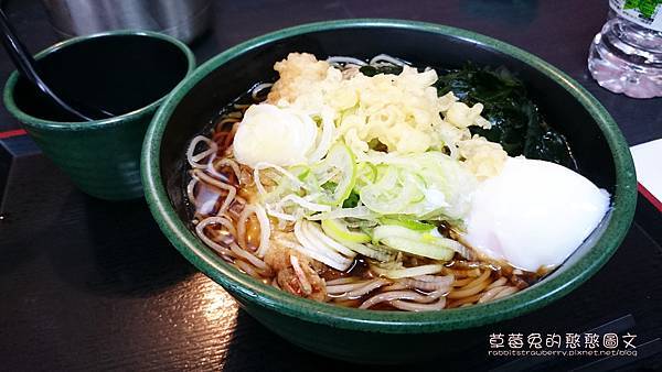 下圖是我的蕎麥麵,有加點溫泉蛋、炸蝦、海帶等等......超好吃~~~