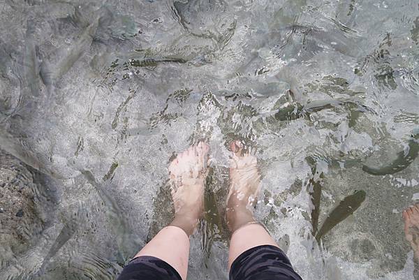 雖然可能看不清楚,但只是站在這沙灘邊邊,即使沒有食物,腳邊也一堆魚游來游去~~