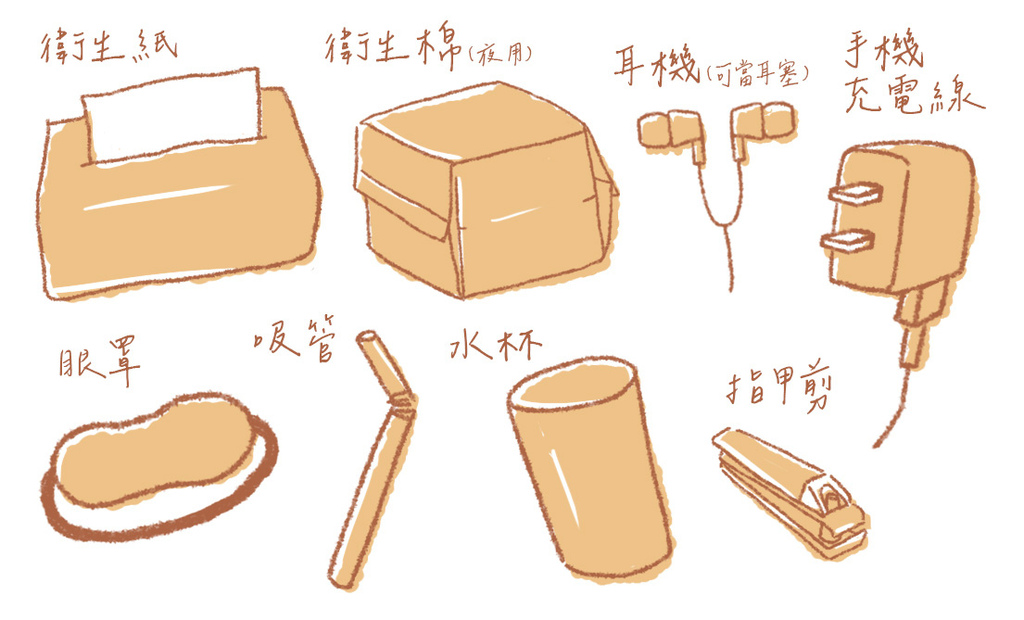 以下文字底色為個人認為攜帶重要性~~黃底色最重要 、橘底色次之、白底色不帶也沒關係
