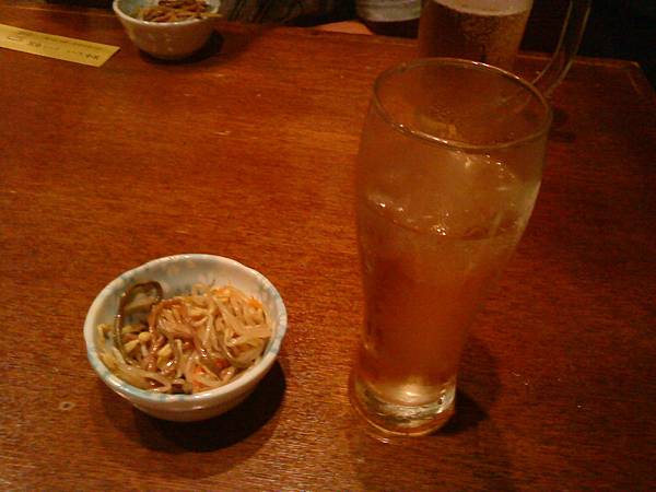 照片上的是無料前菜(?)跟我點的梅子酥打酒 酒很合我的胃口跟果汁差不多哈哈
