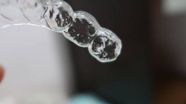 是透明的,很像透明的齒模,分上下兩排,晚上睡前自己套上去。